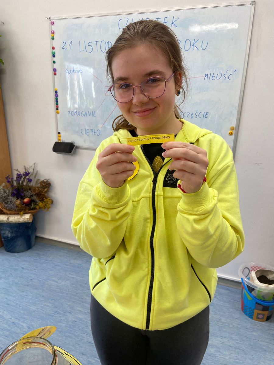 Jak każdego roku 21 listopada obchodziliśmy Dzień Życzliwości i Pozdrowień połączony z prezentacją działań w ramach programu Up- Right- wspierającego odporność psychiczną wśród nastolatków. Z tej okazji w naszej placówce wydarzyło się wiele ciekawych inicjatyw. Ten dzień to wyjątkowa okazja by promować wartości takie jak empatia, szacunek i dobroć wobec innych. To idealny moment, aby zainspirować uczniów do wykazywania się życzliwością poprzez różnorodne, kreatywne zadania.