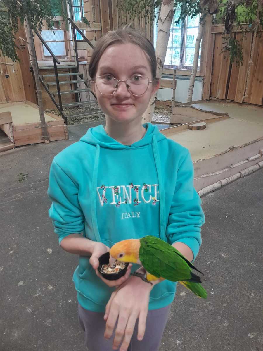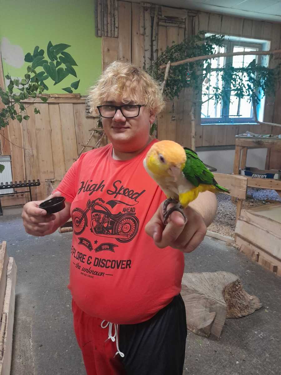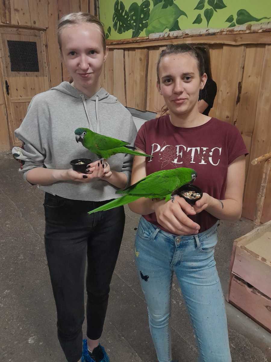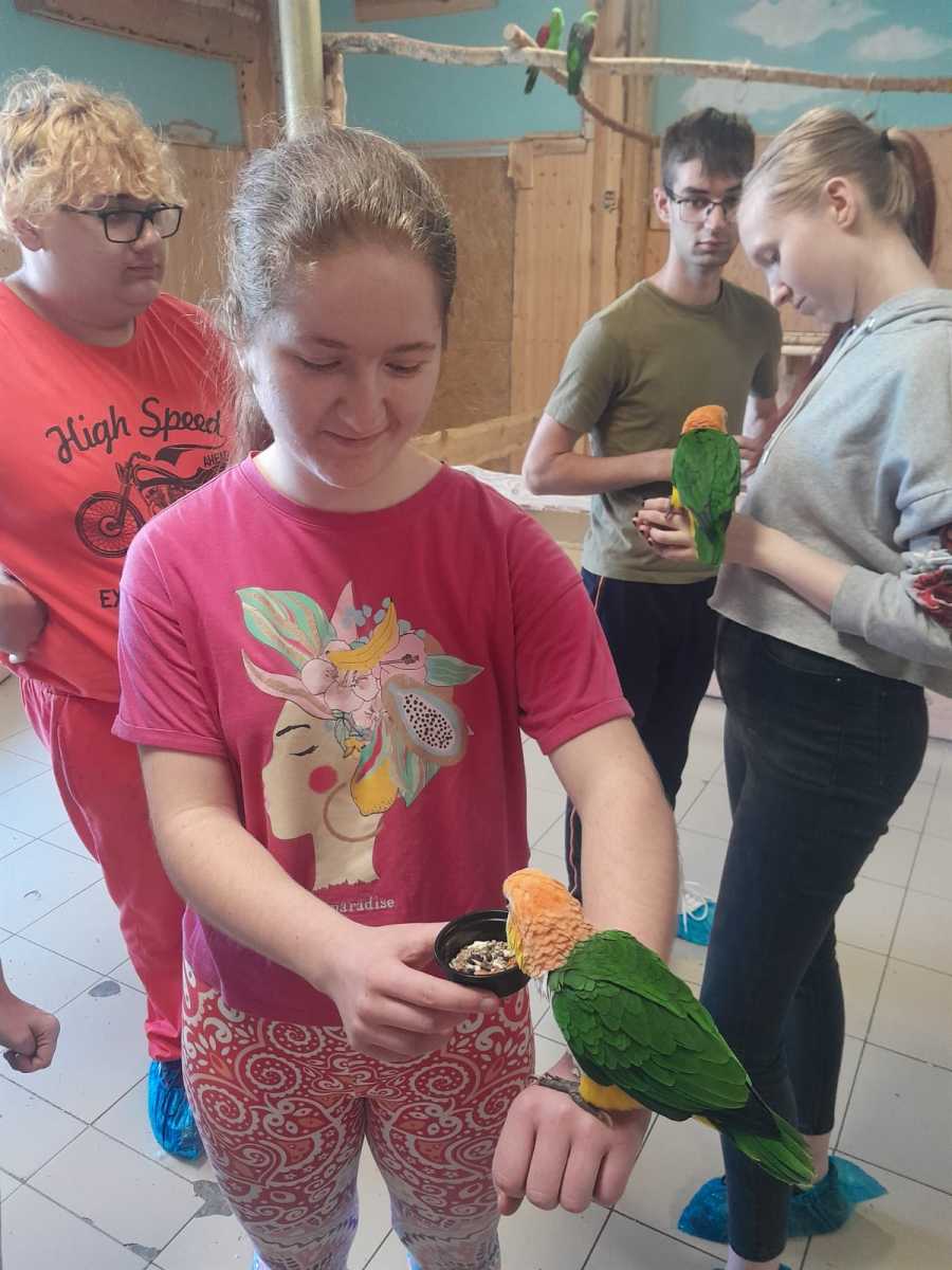 Po zajęciach baristycznych oprócz spaceru po okolicy czekała na naszych uczniów jeszcze jedna niespodzianka, a mianowicie wizyta w papugarni, w trakcie której uczniowie mieli możliwość obcowania z tymi egzotycznymi ptakami.